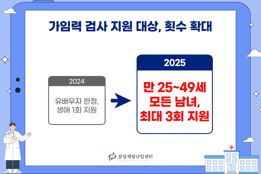 | 2026년 1월 1일부터 변화된 가임력 검사 지원 대상 확대에 대해 알아봐요! (0) | 2026.01.02 |