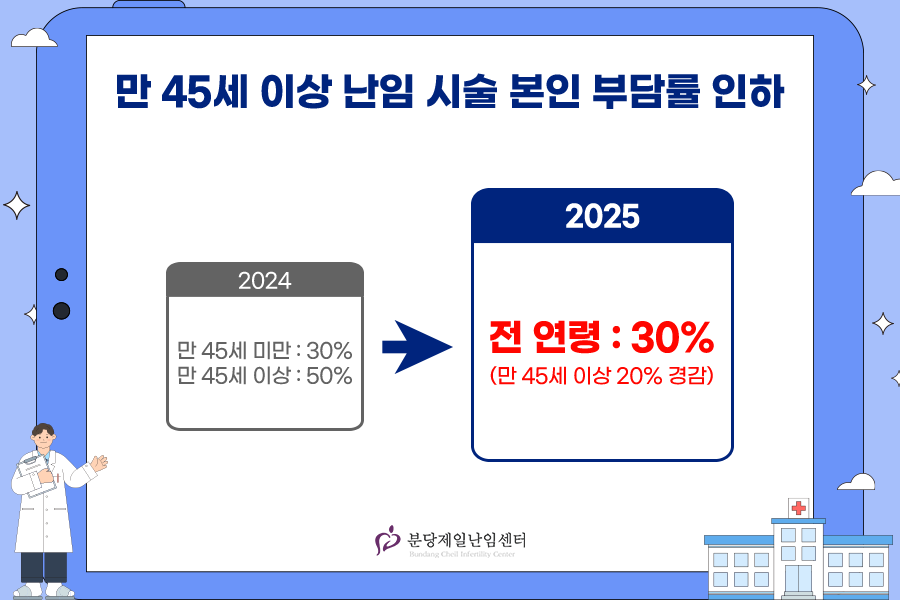 ※ 만 45세 이상의 여성도 난임 시술 시 본인 부담률이 30%로 인하되어 지원 가능